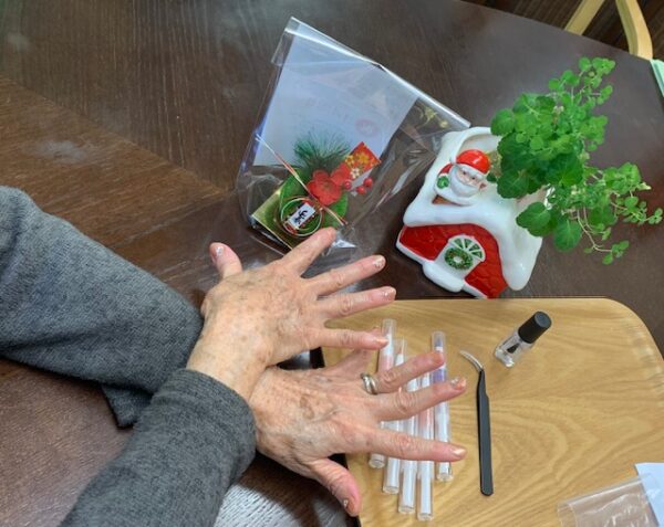 イベント中は、利用者様同士で指先を見せ合いながら喜ばれる姿が多く見られ、